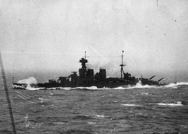 HMS Hood low in water; J Gilbert, Public domain, via Wikimedia Commons